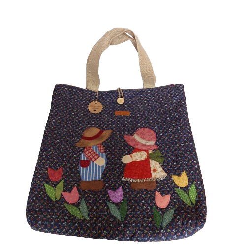 Bolso de tela de algodón con aplicaciones en tela y quilt.